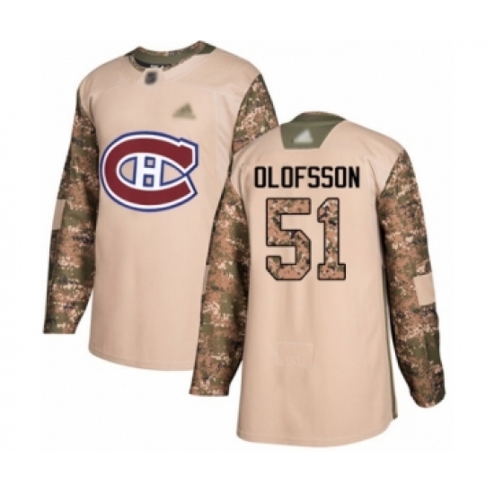 >Men's Montreal Canadiens #51 Gustav Olofsson Authentic Camo Veterans Day Practice Hockey Jersey