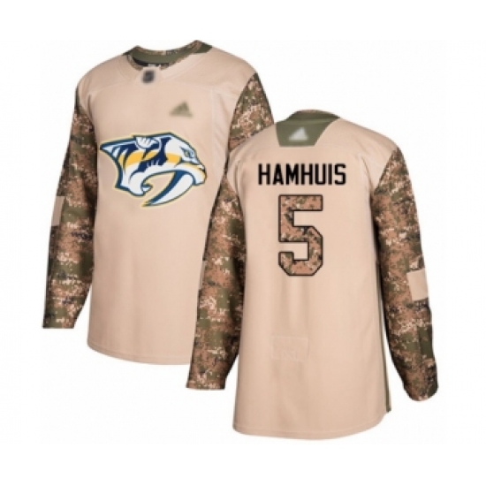 >Men's Nashville Predators #5 Dan Hamhuis Authentic Camo Veterans Day Practice Hockey Jersey