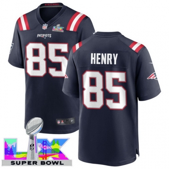 Men's New England Patriots #85 Hunter Henry Blue 2025 2026 Super Bowl LX F U S E Stitched Jersey
