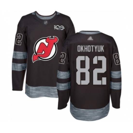 Men's New Jersey Devils #82 Nikita Okhotyuk Authentic Black 1917-2017 100th Anniversary Hockey Jersey