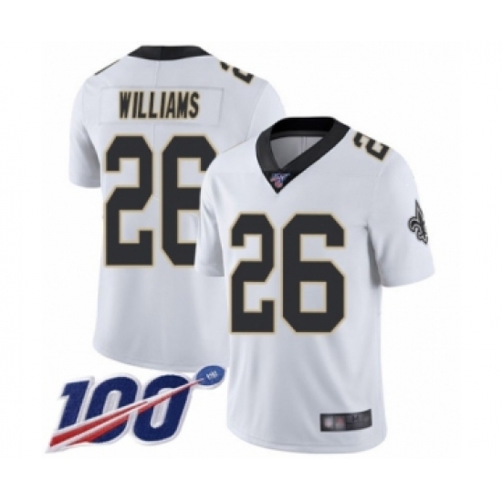 >Men's New Orleans Saints #26 P.J. Williams White Vapor Untouchable Limited Player 100th Season Football Jersey