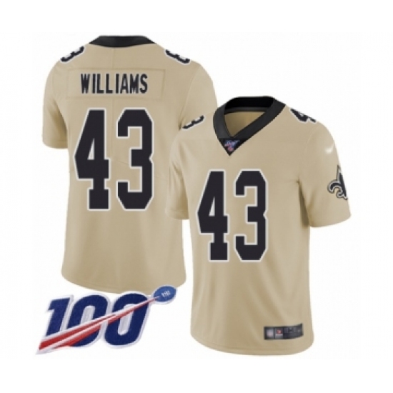 Men's New Orleans Saints #43 Marcus Williams Limited Gold Inverted Legend 100th Season Football Jersey