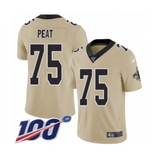 Men's New Orleans Saints #75 Andrus Peat Limited Gold Inverted Legend 100th Season Football Jersey
