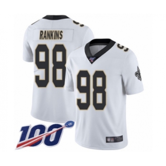 Men's New Orleans Saints #98 Sheldon Rankins White Vapor Untouchable Limited Player 100th Season Football Jersey