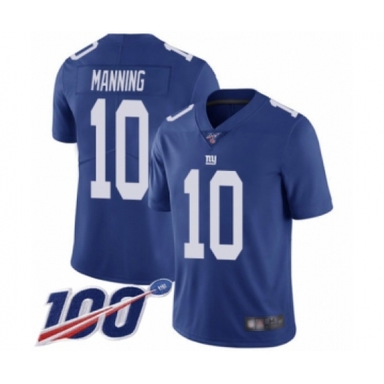 Men's New York Giants #10 Eli Manning Royal Blue Team Color Vapor Untouchable Limited Player 100th Season Football Jersey