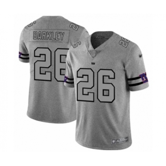 >Men's New York Giants #26 Saquon Barkley Limited Gray Team Logo Gridiron Football Jersey