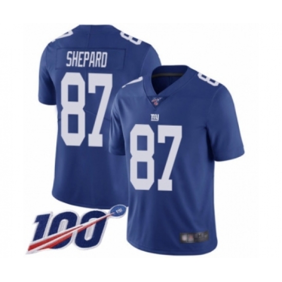 >Men's New York Giants #87 Sterling Shepard Royal Blue Team Color Vapor Untouchable Limited Player 100th Season Football Jersey