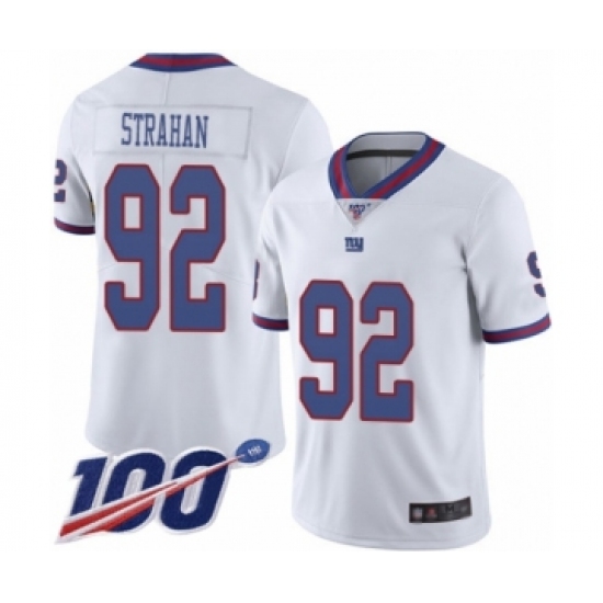 >Men's New York Giants #92 Michael Strahan Limited White Rush Vapor Untouchable 100th Season Football Jersey