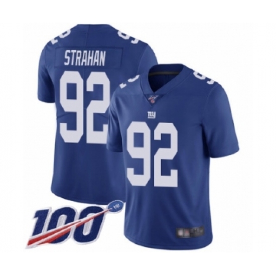 >Men's New York Giants #92 Michael Strahan Royal Blue Team Color Vapor Untouchable Limited Player 100th Season Football Jersey