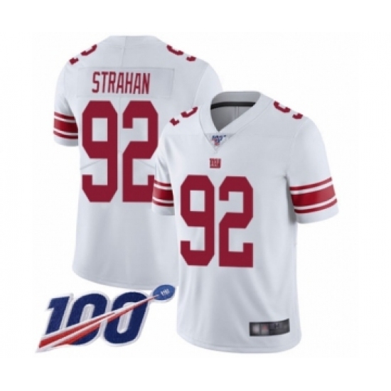 >Men's New York Giants #92 Michael Strahan White Vapor Untouchable Limited Player 100th Season Football Jersey