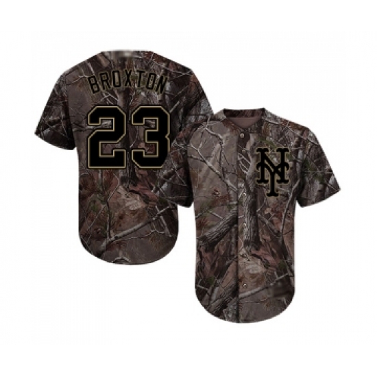 Men's New York Mets #23 Keon Broxton Authentic Camo Realtree Collection Flex Base Baseball Jersey
