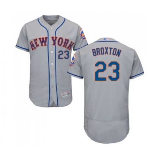 Men's New York Mets #23 Keon Broxton Grey Road Flex Base Authentic Collection Baseball Jersey
