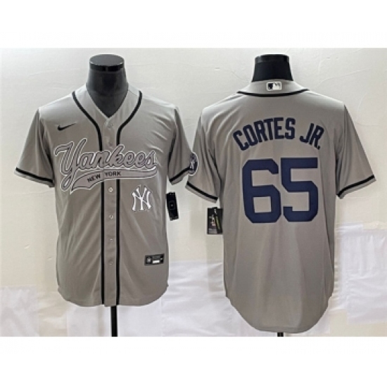 >Men's New York Yankees #65 Nestor Cortes Jr. Gray Cool Base Stitched Baseball Jersey