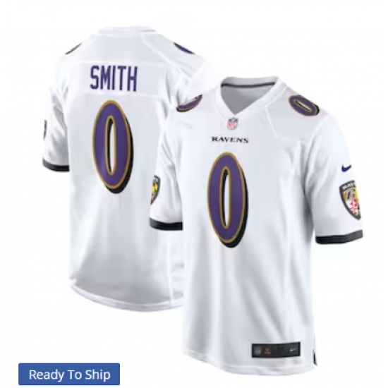 >Men's Nike Baltimore Ravens #0 Roquan Smith White Team Limited Jersey
