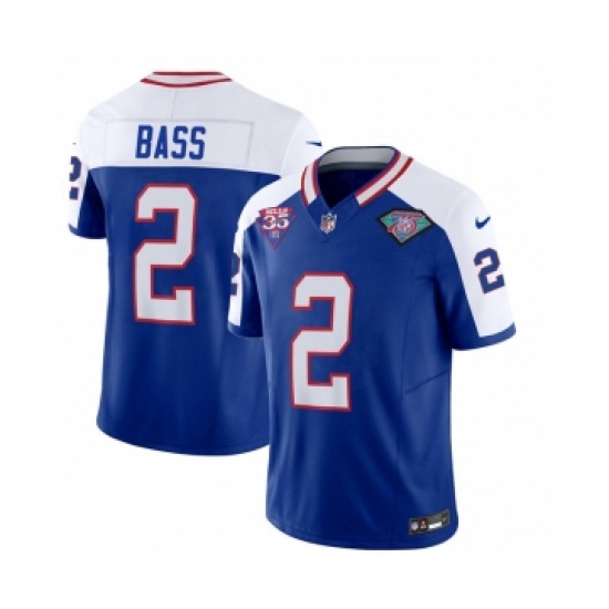Men's Nike Buffalo Bills #2 Tyler Bass Blue White 2023 F.U.S.E. Throwback Vapor Untouchable Limited Football Stitched Jersey