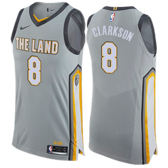 Home>NBA>Cleveland Cavaliers>Jordan Clarkson>Men's Nike Cleveland Cavaliers #8 Jordan Clarkson Authentic Gray NBA Jersey - City Edition