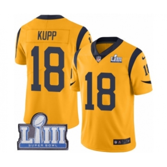 >Men's Nike Los Angeles Rams #18 Cooper Kupp Limited Gold Rush Vapor Untouchable Super Bowl LIII Bound NFL Jersey