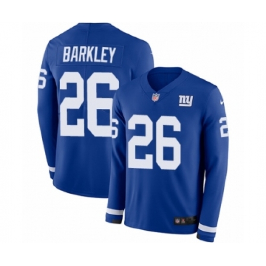 >Men's Nike New York Giants #26 Saquon Barkley Limited Royal Blue Therma Long Sleeve NFL Jersey