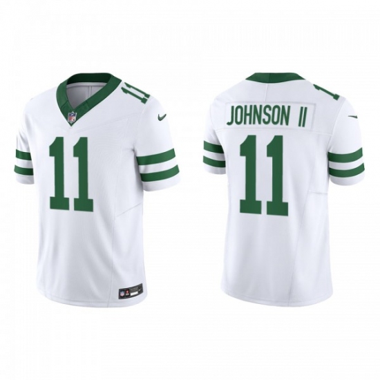 >Men's Nike New York Jets #11 Jermaine Johnson II White 2023 F.U.S.E. Vapor Limited Throwback Stitched Football Jersey