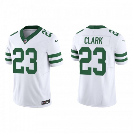 >Men's Nike New York Jets #23 Chuck Clark White 2023 F.U.S.E. Vapor Limited Throwback Stitched Football Jersey