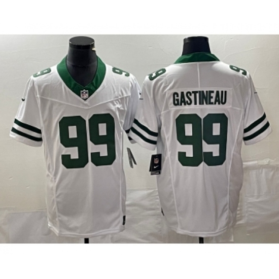 Men's Nike New York Jets #99 Mark Gastineau White 2023 F.U.S.E. Vapor Limited Throwback Stitched Football Jersey