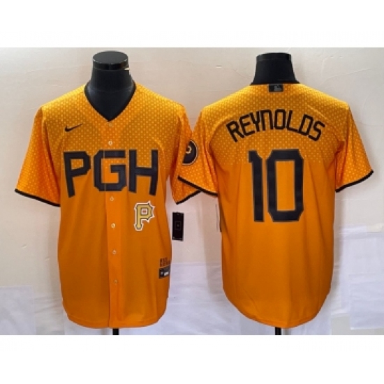 Men's Nike Pittsburgh Pirates #10 Bryan Reynolds Gold 2023 City Connect Stitched Jersey