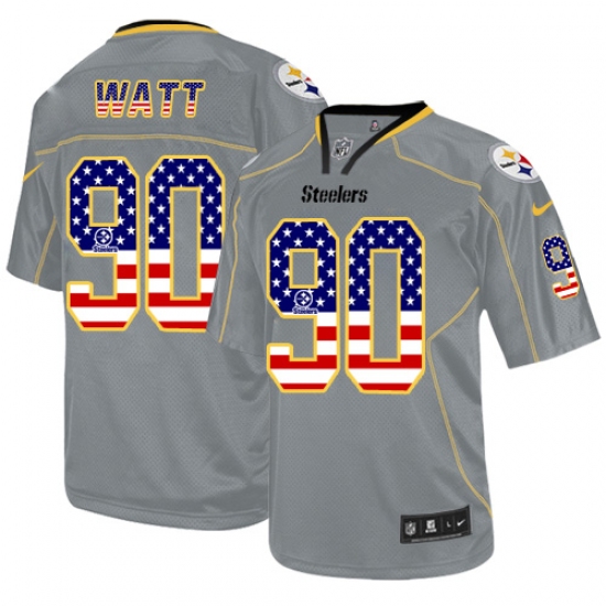 Home>NFL>Pittsburgh Steelers>T. J. Watt>Men's Nike Pittsburgh Steelers #90 T. J. Watt Elite Grey USA Flag Fashion NFL Jersey