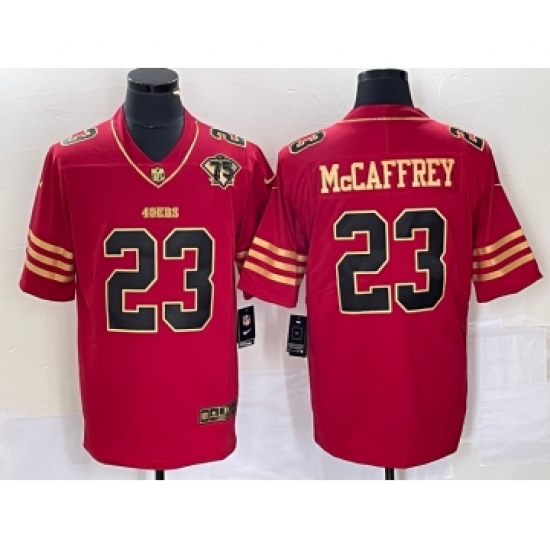 Men's Nike San Francisco 49ers #23 Christian McCaffrey Red 75th Golden Edition Stitched Limited Jersey