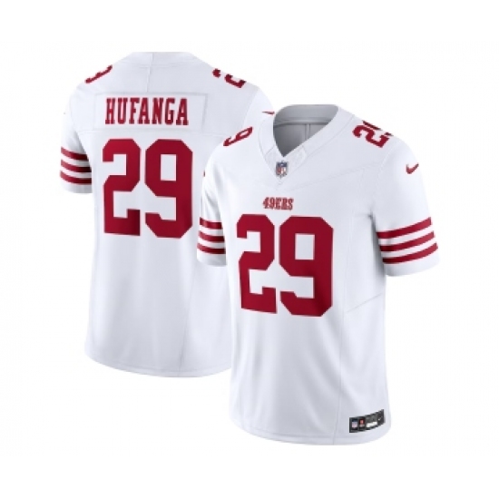 >Men's Nike San Francisco 49ers #29 Talanoa Hufanga White 2023 F.U.S.E. Vapor Untouchable Limited Stitched Football Jersey