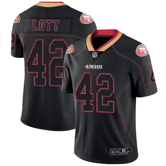 Men's Nike San Francisco 49ers #42 Ronnie Lott Limited Lights Out Black Rush NFL Jersey