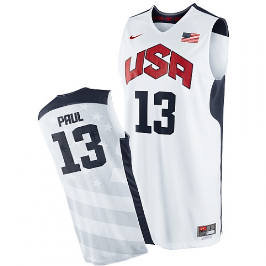 Men's Nike Team USA #13 Chris Paul Authentic White 2012 Olympics Basketball Jersey