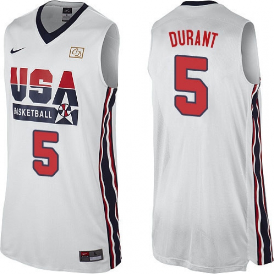 Men's Nike Team USA #5 Kevin Durant Swingman White 2012 Olympic Retro Basketball Jersey