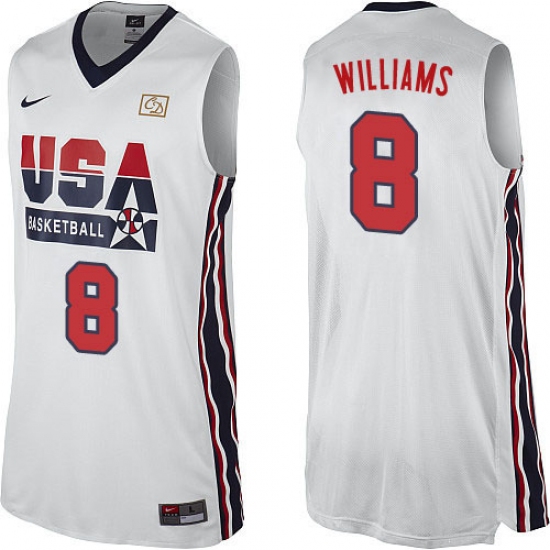 Men's Nike Team USA #8 Deron Williams Swingman White 2012 Olympic Retro Basketball Jersey