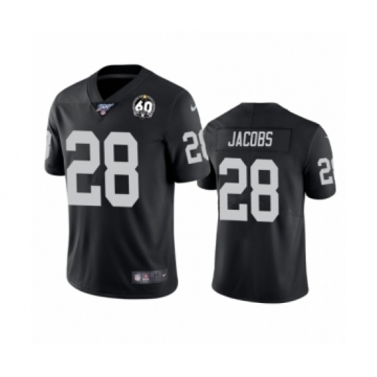 >Men's Oakland Raiders #28 Josh Jacobs Black 60th Anniversary Vapor Untouchable Limited Player 100th Season Football Jersey