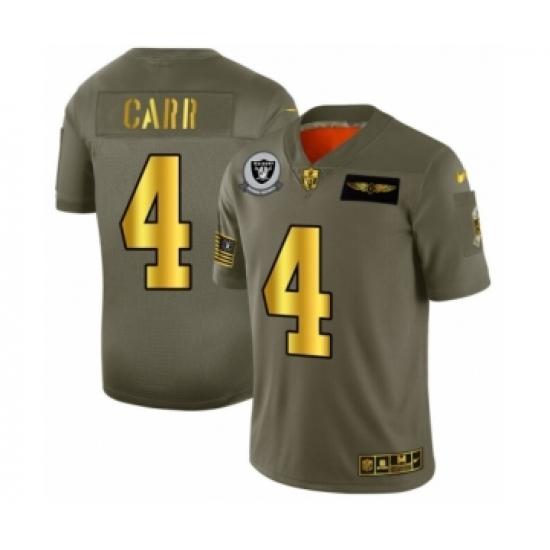 Men's Oakland Raiders #4 Derek Carr Limited Olive Gold 2019 Salute to Service Football Jersey