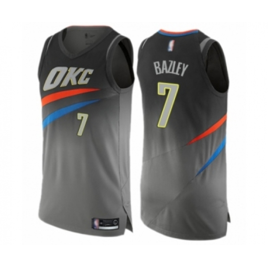 >Men's Oklahoma City Thunder #7 Darius Bazley Authentic Gray Basketball Jersey - City Edition