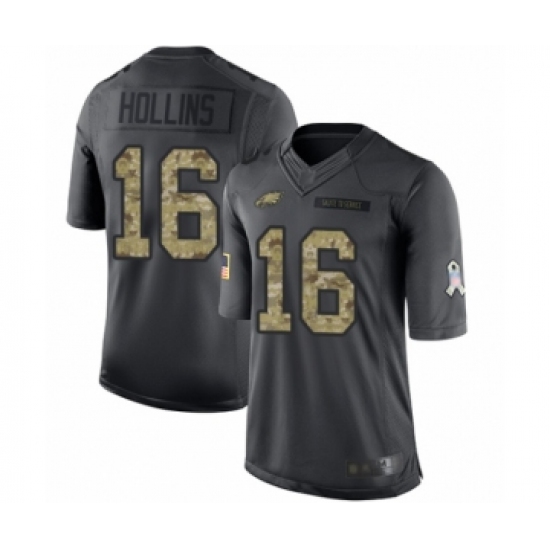 >Men's Philadelphia Eagles #16 Mack Hollins Limited Black 2016 Salute to Service Football Jersey
