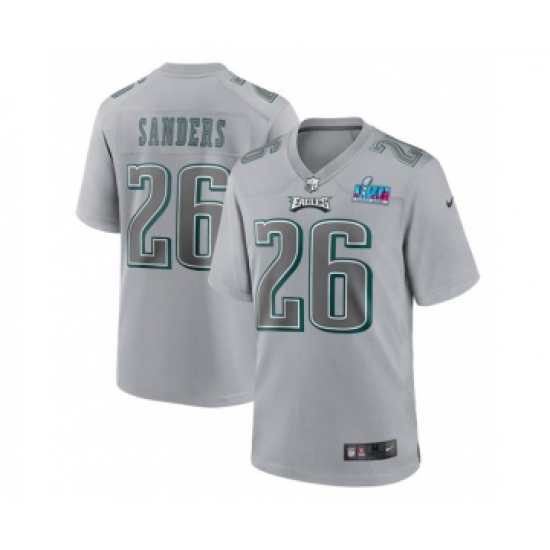 >Men's Philadelphia Eagles #26 Miles Sanders Gray Super Bowl LVII Patch Atmosphere Fashion Stitched Game Jersey
