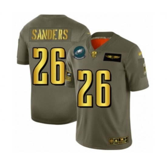 >Men's Philadelphia Eagles #26 Miles Sanders Olive Gold 2019 Salute to Service Limited Player Football Jersey