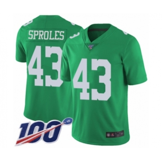 >Men's Philadelphia Eagles #43 Darren Sproles Limited Green Rush Vapor Untouchable 100th Season Football Jersey