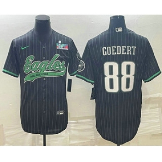 Men's Philadelphia Eagles #88 Dallas Goedert Black Pinstripe With Super Bowl LVII Patch Cool Base Stitched Baseball Jersey