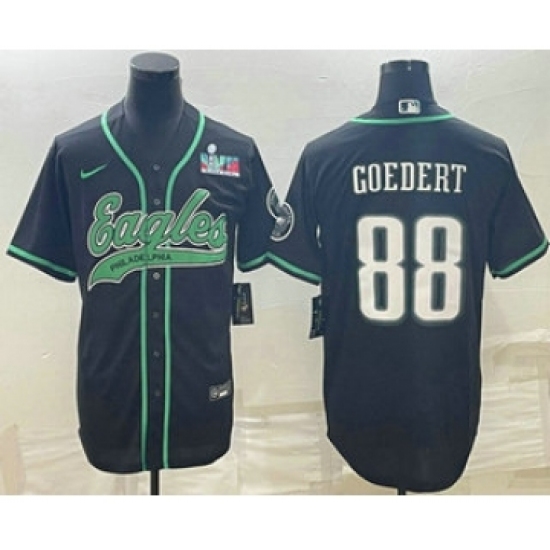 >Men's Philadelphia Eagles #88 Dallas Goedert Black With Super Bowl LVII Patch Cool Base Stitched Baseball Jersey