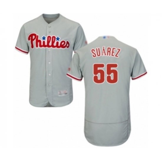 >Men's Philadelphia Phillies #55 Ranger Suarez Grey Road Flex Base Authentic Collection Baseball Player Jersey