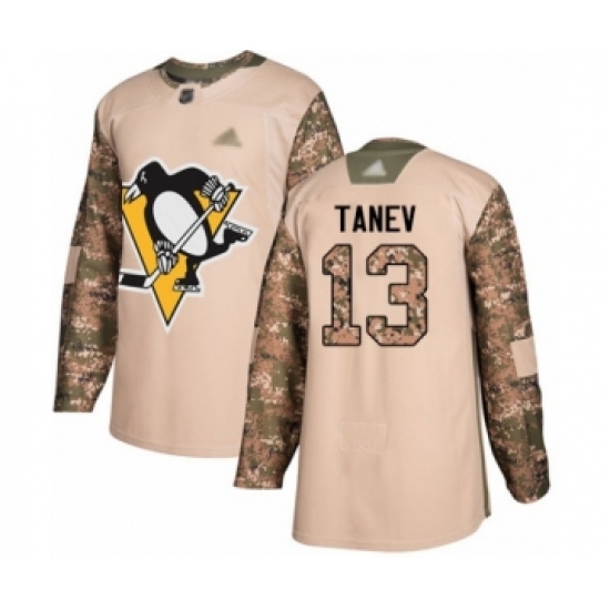 >Men's Pittsburgh Penguins #13 Brandon Tanev Authentic Camo Veterans Day Practice Hockey Jersey