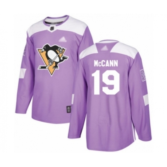 >Men's Pittsburgh Penguins #19 Jared McCann Authentic Purple Fights Cancer Practice Hockey Jersey