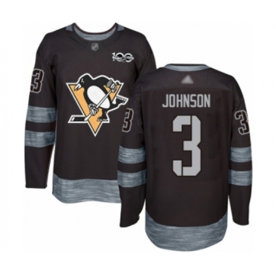 Men's Pittsburgh Penguins #3 Jack Johnson Authentic Black 1917-2017 100th Anniversary Hockey Jersey