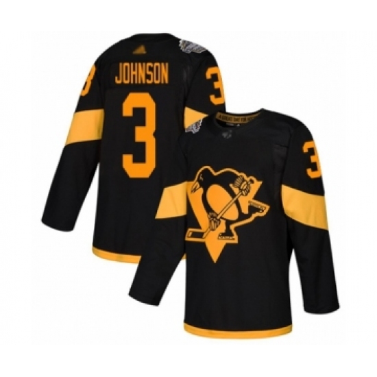 Men's Pittsburgh Penguins #3 Jack Johnson Authentic Black 2019 Stadium Series Hockey Jersey