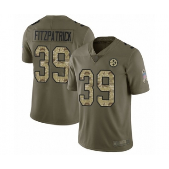 >Men's Pittsburgh Steelers #39 Minkah Fitzpatrick Limited Olive Camo 2017 Salute to Service Football Jersey