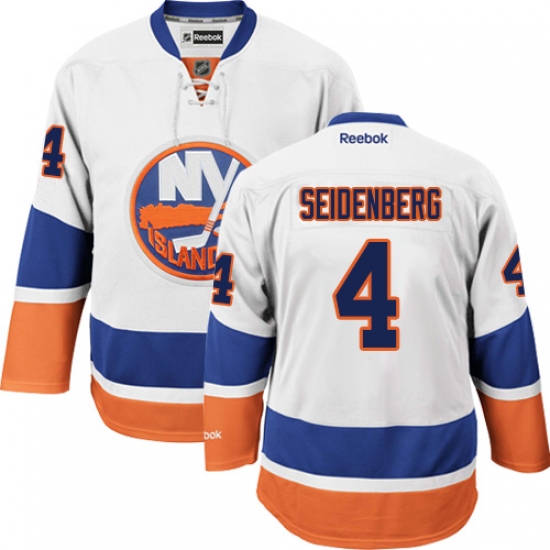 Home>NHL>New York Islanders>Dennis Seidenberg>Men's Reebok New York Islanders #4 Dennis Seidenberg Authentic White Away NHL Jersey