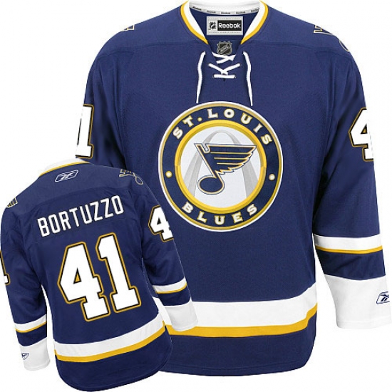 Home>NHL>St. Louis Blues>Robert Bortuzzo>Men's Reebok St. Louis Blues #41 Robert Bortuzzo Authentic Navy Blue Third NHL Jersey
